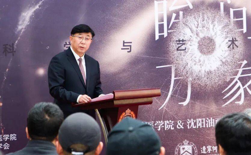 辽宁何氏医学院常务副院长丁维光教授代表学校,对参加开幕式的社会各界嘉宾和艺术家们表示热烈欢迎。丁维光教授指出,作为一所以视觉科学为特色的应用型普通高等医学院校,辽宁何氏医学院始终致力于构建“医学+艺术”的特色育人路径,将美育全方位融入人才培养全过程,践行“以美启真、以艺润心”的教育理念。他相信,当医学教育拥抱美育的灵韵,必将培养出更多“眼中有光、心中有爱、术中有艺”的新时代医学人才。